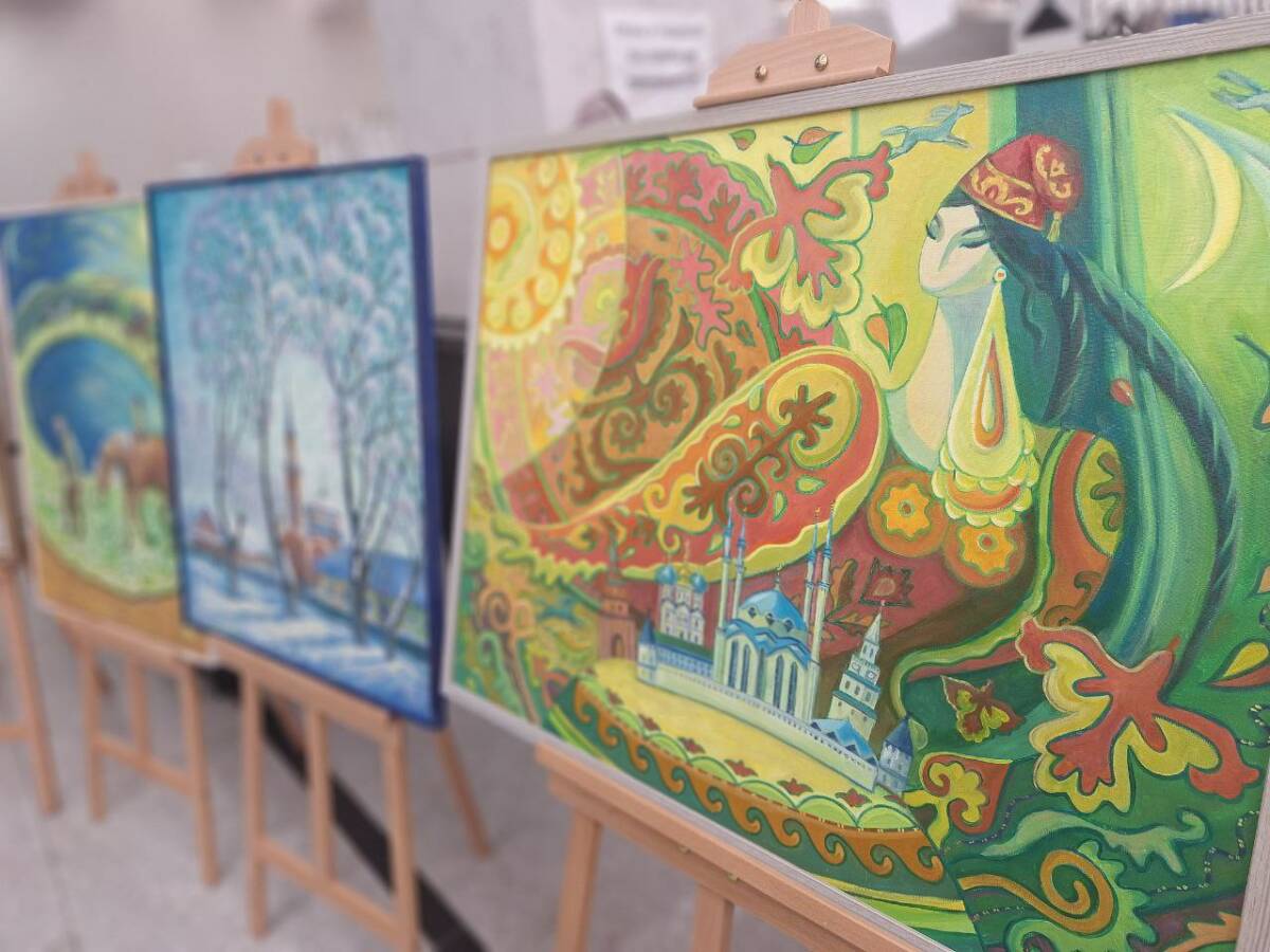 Здесь же, в фойе КЦ «Сайдаш», развернулась выставка «Мотивы родного края» Николая и Ольги Фадеевых — семейной пары, основавших художественное отделение в Детской школе искусств Менделеевска, где сами же и преподают. Здесь же были представлены работы их учеников. А народный оркестр «Наигрыш» исполнил «Танец Сююмбике» из оперы Фарида Яруллина «Шурале».