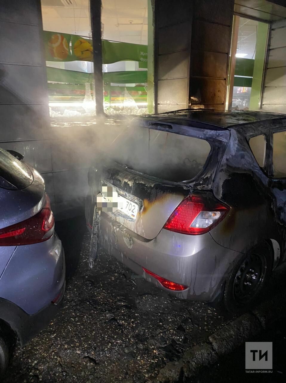 Ночью у магазина в Казани подожгли иномарку из Башкирии, авто сгорело