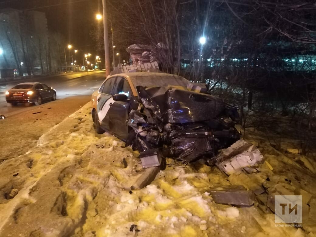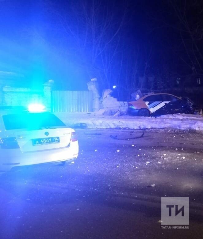 Ночью в Казани каршеринговое авто снесло кирпичный забор, женщина и ребенок в больнице