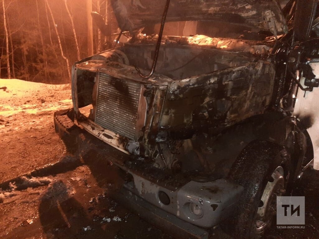 Ночью в казанском поселке Дербышки сгорели кабина и часть тента грузовика