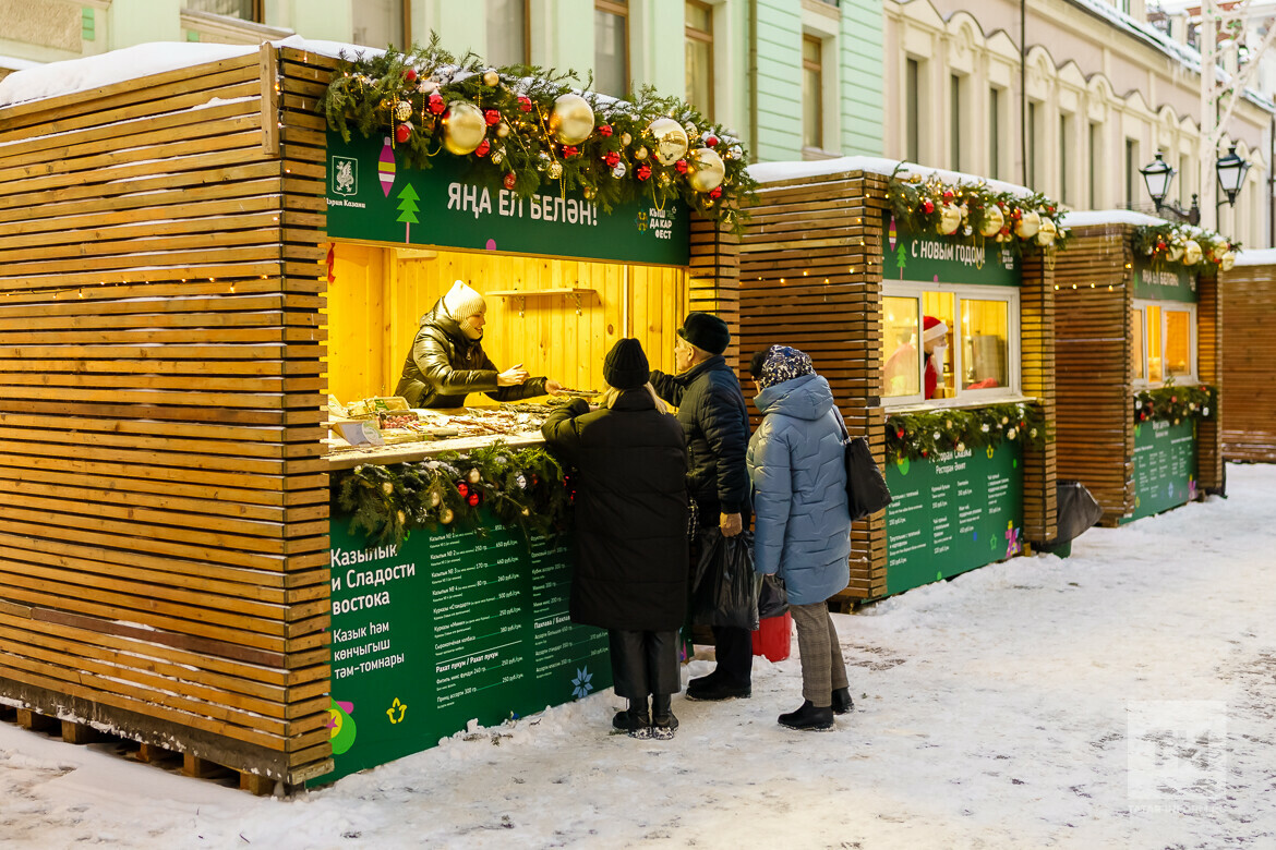 Сегодня на улице Баумана в Казани состоялось открытие второй площадки ежегодного зимнего фестиваля «КышДаКар-фест». На центральной пешеходной улице установили девять празднично украшенных ярмарочных павильонов, в которых гости фестиваля могут найти новогодние сувениры, украшения, оригинальные подарки для близких, а также попробовать угощения от местных производителей и «подзарядиться» новогодним настроением.