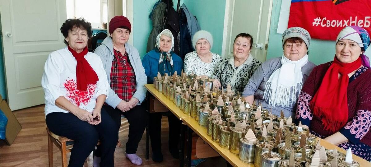 В Новошешминске пенсионерки собираются в центральной библиотеке: делают окопные свечи, раскладывают чай, вручную шьют тактические носилки. В селе Утяшкино бабушки в доме культуры плетут маскировочные сети, делают окопные свечи.