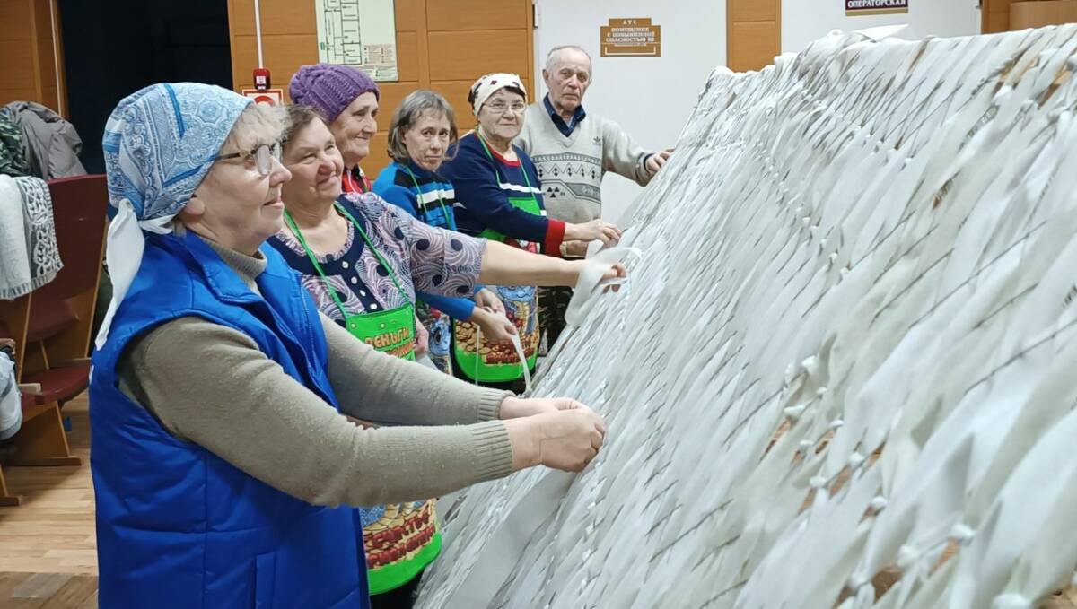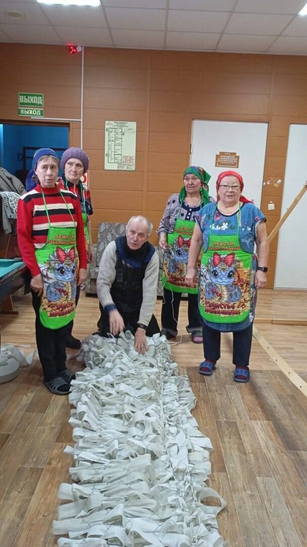 «Жители деревни Горшково продолжают плести маскировочные сети, — сообщила волонтер Надежда Панфилова. — Пусть они сохранят жизни наших защитников! Вся наша команда в 9 человек работает от души! На сегодня подушек сшито около 1000 штук. Синтепон и парафин для окопных свеч покупаем сами, а также рулоны спанборда для изготовления маскировочных сетей. Летом плели из зеленого спанборда, сейчас зимой из белого».