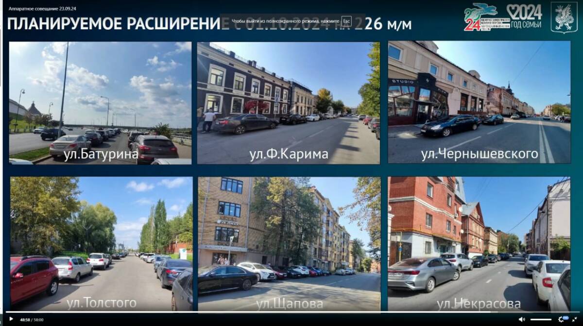 «На улицах Батурина, Карима, Подлужная, Чернышевского, Щапова, Кремлевской набережной. Места появятся не на всем протяжении улиц, а в существующих карманах и на местах, где осуществлялась хаотичная парковка», – отметил замглавы исполкома.