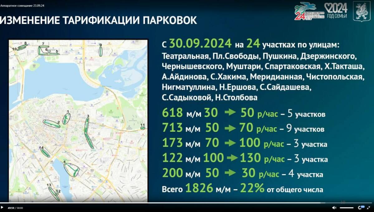 С 30 сентября изменится стоимость платной парковки на 24 участках Казани.