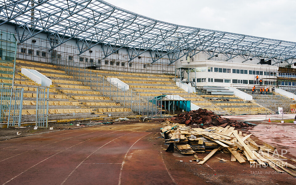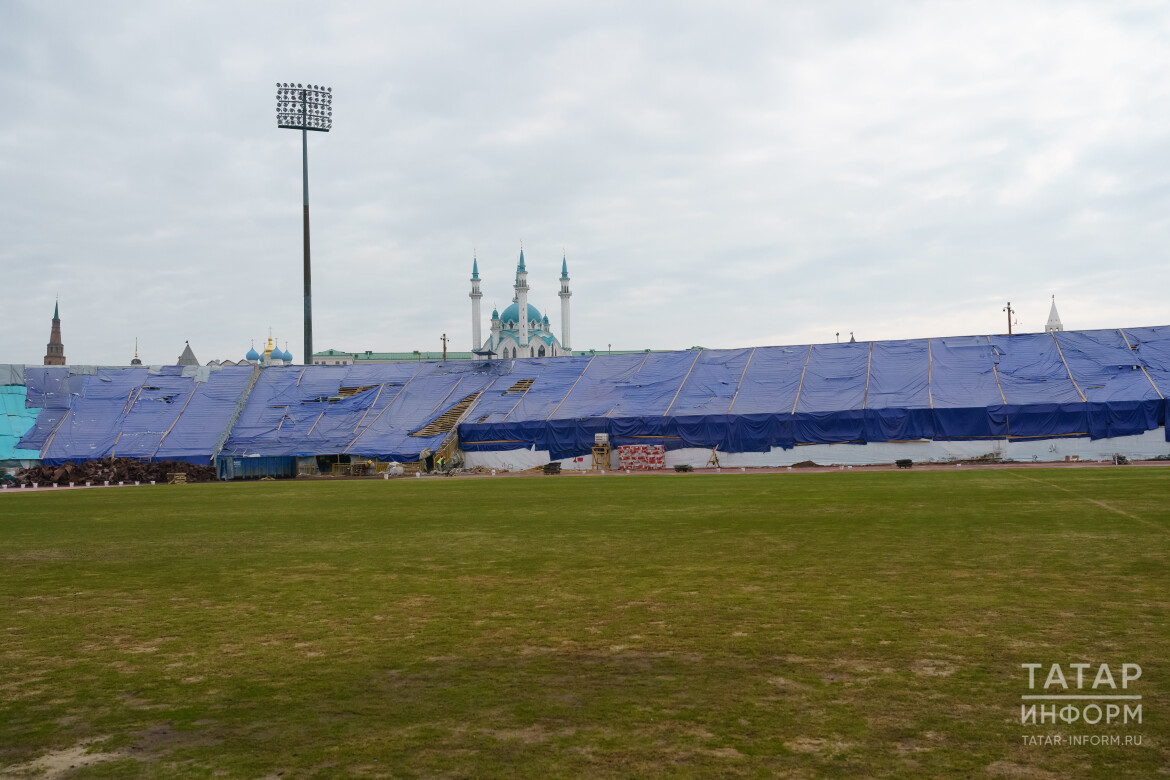 Сегодняшним прохладным утром проинспектировать работы на стадионе прибыл мэр Казани Ильсур Метшин. Журналисты приехали на место чуть раньше, чтобы посмотреть на то, как проходит реконструкция, на которую стадион был закрыт еще в декабре прошлого года.