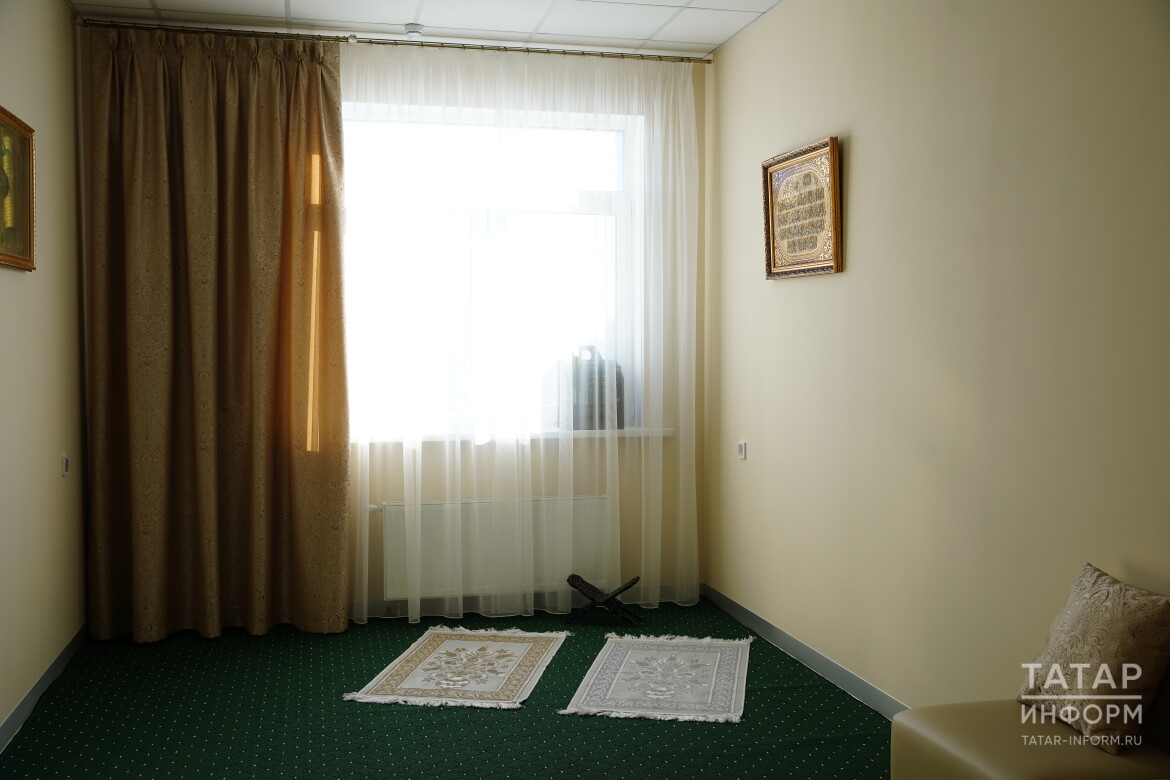 На седьмом этаже расположились молитвенная и молельная комнаты для православных и мусульман. Здесь роженицы и медики смогут помолиться в свободные минуты.