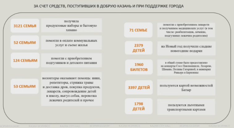 В столице Татарстана в этом месяце в тестовом режиме запустили новый социальный проект по сбору гуманитарной помощи «Казань рядом», направленный на информирование жителей и повышение эффективности добровольческих проектов. Об этом на деловом понедельнике сообщила начальник управления социальной политики города Ирина Смирнова.