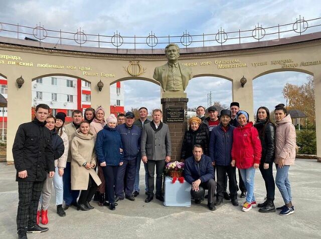 Перед премьерой в сквере напротив театра состоялось возложение цветов к бюсту основателя театра Сабиру Амутбаеву.