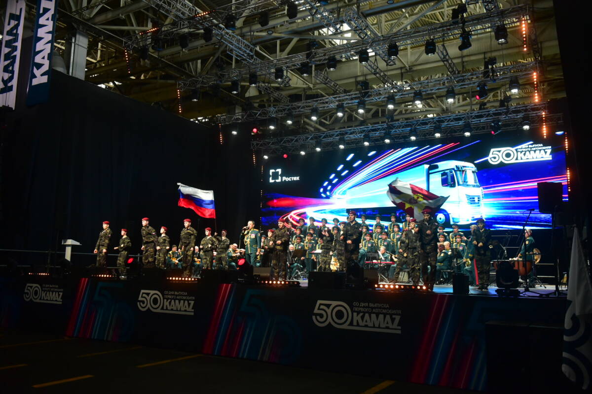 На автомобильном заводе КАМАЗ прошел праздничный концерт в честь юбилея. Торжественное мероприятие открыл Академический ансамбль песни и пляски войск национальной гвардии Российской Федерации.