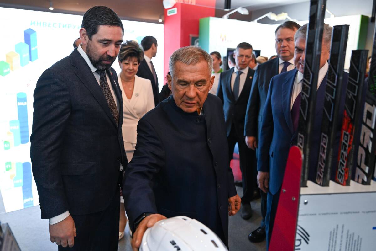 Наиль Магдеев провел руководителю республики экскурсию по выставке.