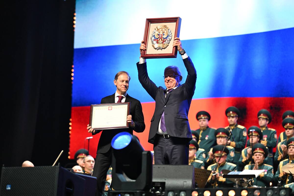 От имени Владимира Путина коллективу КАМАЗа вручили почетный знак Российской Федерации «За успехи в труде». Его из рук Дениса Мантурова получил генеральный директор предприятия Сергей Когогин.