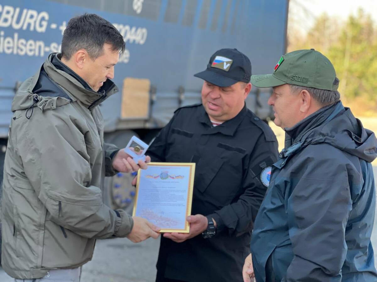 Кроме этого, представители боевого братства города Нурлата вручили благодарственное письмо и медаль вице-премьеру Республики Татарстан Фанилю Аглиуллину за вклад в организацию сборов гуманитарной помощи для подшефных городов Лисичанск и Рубежное и оказание поддержки участникам СВО.