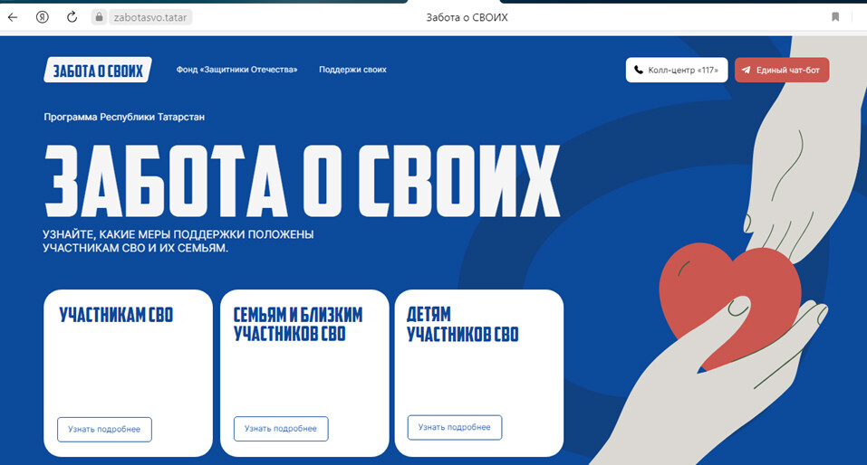 Большой поддержкой для участников СВО, членов их семей являются меры помощи, которые были приняты на федеральном и региональном уровнях. Камелина напомнила, что в ноябре текущего года в республике в пилотном режиме был запущен информационный ресурс «Забота о своих», где собрана и систематизирована информация обо всех действующих мерах поддержки бойцов СВО и членов из семей.