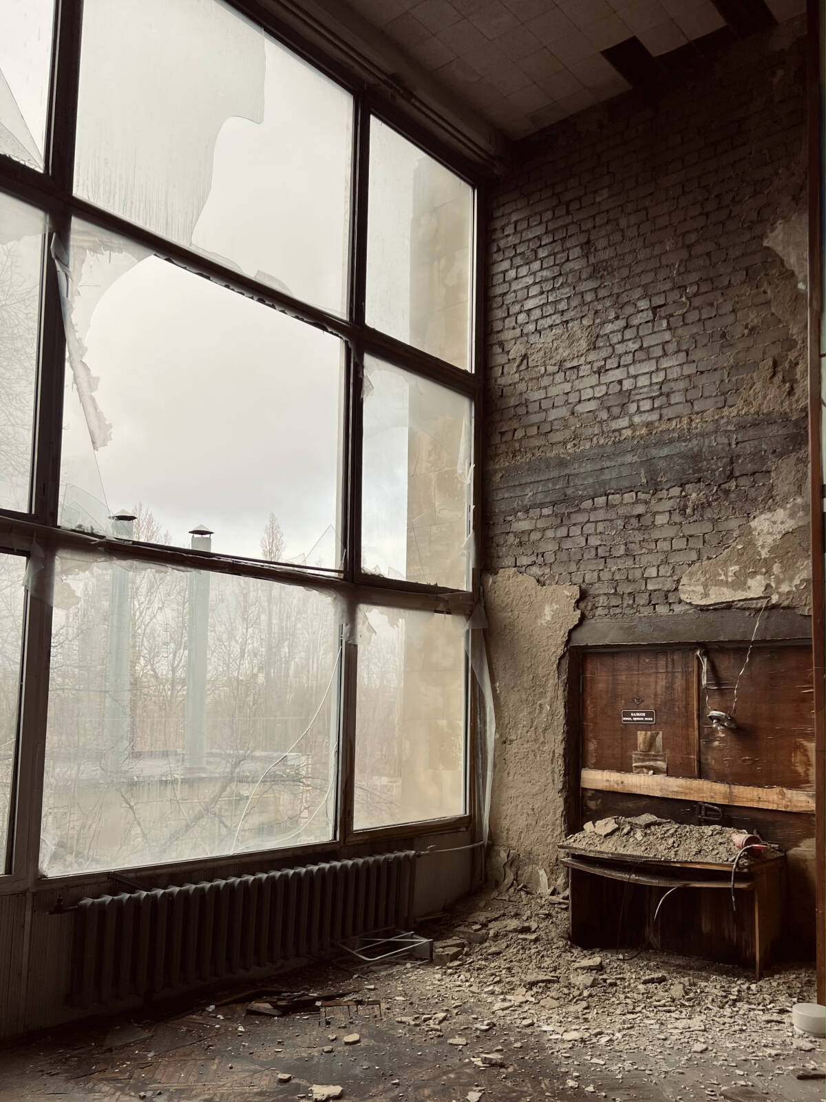 Небольшой коллектив латает эти стены как умеет. Стекольщик принес собственный материал, застеклил некоторые окна – те, что поменьше. Делают уборку, наводят порядок во всех помещениях. Но с серьезными повреждениями им не совладать.