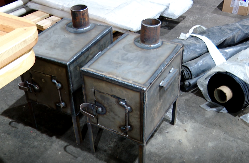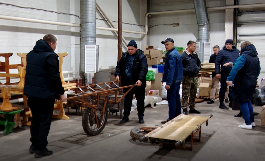Загрузили в машину и носилки. Их делают работники предприятий прямо в цехах.