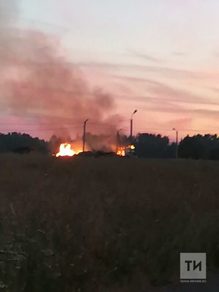 Очевидцы сняли на видео крупный пожар на территории бывшего конезавода в РТ