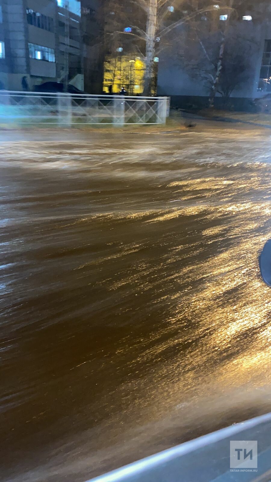 Очевидцы сняли на видео потоп на улице Серова в Казани
