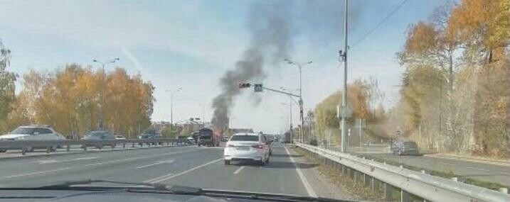 Очевидцы сняли на видео пылающий на дороге в Казани кроссовер