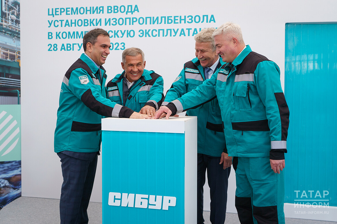 Символическую кнопку на торжественной церемонии запуска нажали Рустам Минниханов и председатель совета директоров СИБУРа Леонид Михельсон, а также Михаил Карисалов и Айрат Сафин