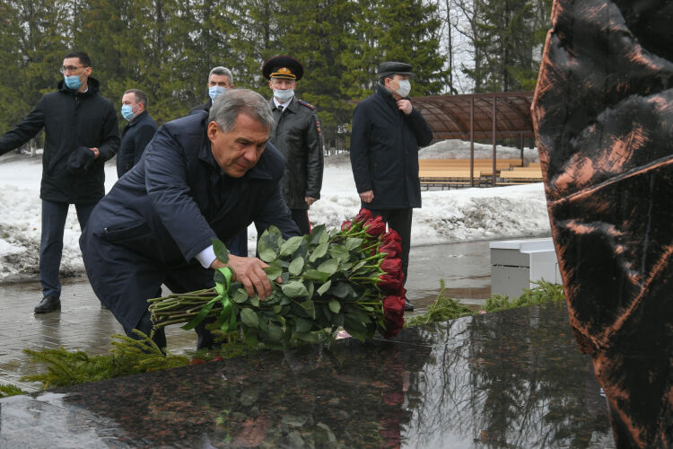Президент РТ и сопровождающие его лица возложили цветы к Мемориалу славы сотрудников органов внутренних дел.