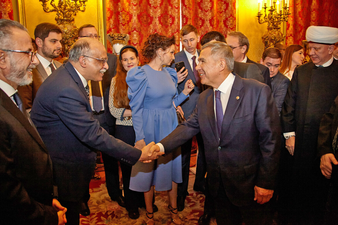 Президент Татарстана прибыл в Дом приемов МИД РФ, расположенный в старинном особняке в центре Москвы, вместе с министром иностранных дел России Сергеем Лавровым. Почетными гостями торжественной церемонии стали чрезвычайные и полномочные послы стран – участниц ОИС, представители региональных и федеральных ведомств, СМИ и многие другие.