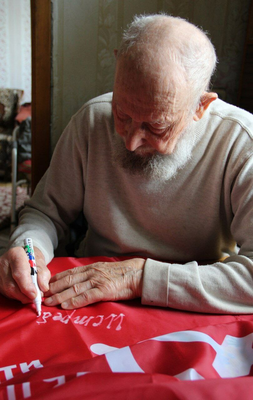 «Мне с передовой позвонил военкор Дмитрий Макаренко. Он сообщил, что они находятся на фронтовой линии вместе с батальоном „Казань“, в составе которого выпускники Казанского танкового училища. Мы знали историю Александра Малова. Он танкист, воевал на Украине, дошел до Берлина. И возникла идея передать ребятам флаги Республики Татарстан и Российской Федерации. Бойцы сказали, что если знамя подпишет ветеран, это еще больше будет мотивировать их <...>. Мы решили передать ребятам копию Знамени Победы со словами поддержки от нашего ветерана», — пояснила Ольга Павлова.