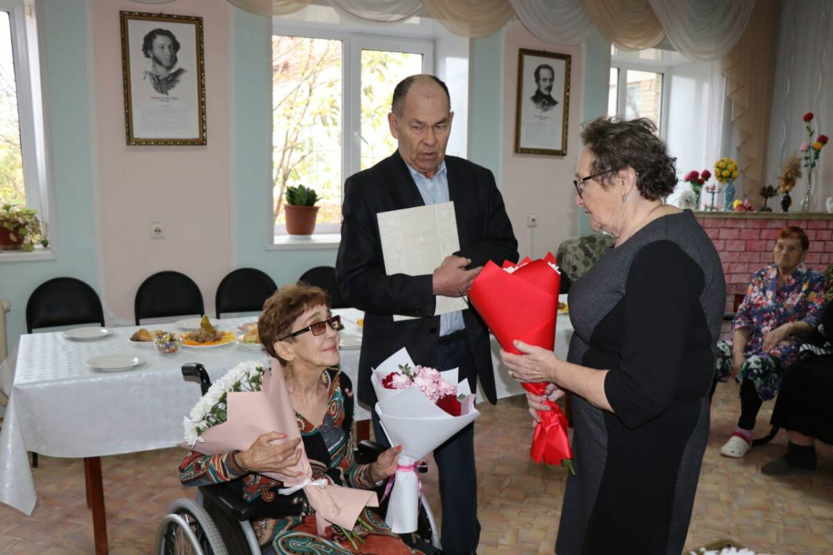«В нашем доме-интернате существует добрая традиция образовывать пары. В настоящее время у нас уже проживает семейная пара, сегодня вот образовался еще один союз, — отметила специалист по социальной реабилитации Ирина Савинова. — Они будут проживать в отдельной комнате, где для них созданы все условия. Все мы очень долго готовились к этому событию, приготовили богатый праздничный стол. Мы желаем им счастливой и долгой жизни». После церемонии Ринат Николаевич проводил свою супругу до комнаты.