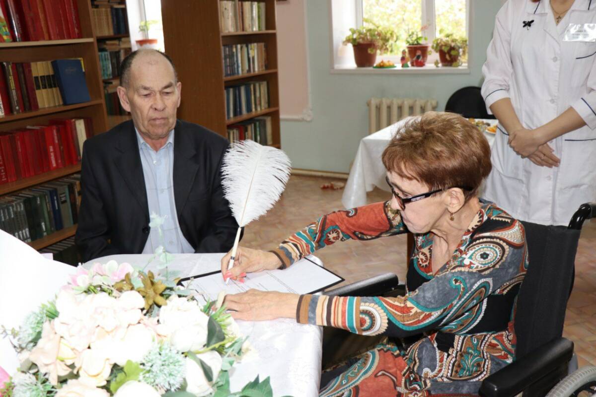В Нурлатском доме-интернате для престарелых и инвалидов в Год семьи состоялось бракосочетание: Ринат Данилов и Тамара Жарова в торжественной обстановке зарегистрировали свои отношения.
