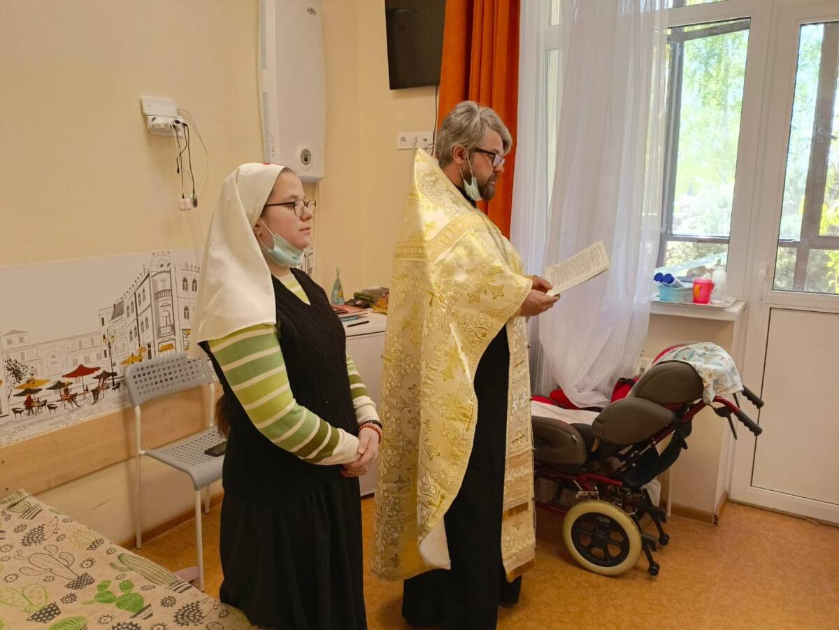 «Мы должны возле каждого пациента вычитать молитвы – это занимает два дня. Два раза в неделю служим акафисты святителю Нектарию и Луке Крымскому. Мы составляем списки тех, кто хочет, чтобы за них помолились. Каждого мажем маслом святого, акафист которого читали, затем они прикладываются к иконке. Также мы совершаем соборование – для этого выкатываем больных на кроватях в холл, где совершается таинство», – объясняет Мария.