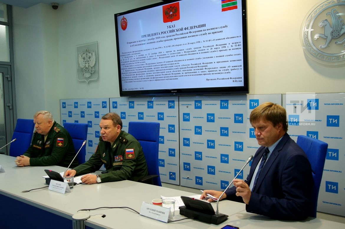 (Казань, 1 октября, «Татар-информ», Оксана Романова). В осеннюю призывную кампанию, стартовавшую 1 октября, Аппарат уполномоченного по правам человека в РТ сопроводит пять воинских команд к месту службы. Об этом сообщил сегодня на пресс-конференции в ИА «Татар-информ» военный комиссар РТ Сергей Погодин.