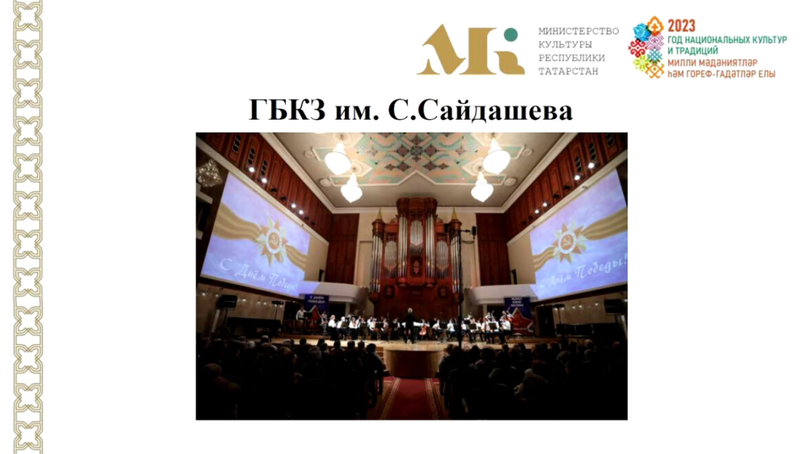 В Государственном Большом концертном зале имени Салиха Сайдашева 4 мая в 18.30 Казанская консерватория проведет концерт, посвященный Дню Победы в Великой Отечественной войне «Музыка Победы». В нем примут участие оркестр Tatarica под управлением Рината Халитова. В программе – сочинения отечественных и зарубежных композиторов, песни военных лет, обработки народных мелодий.
