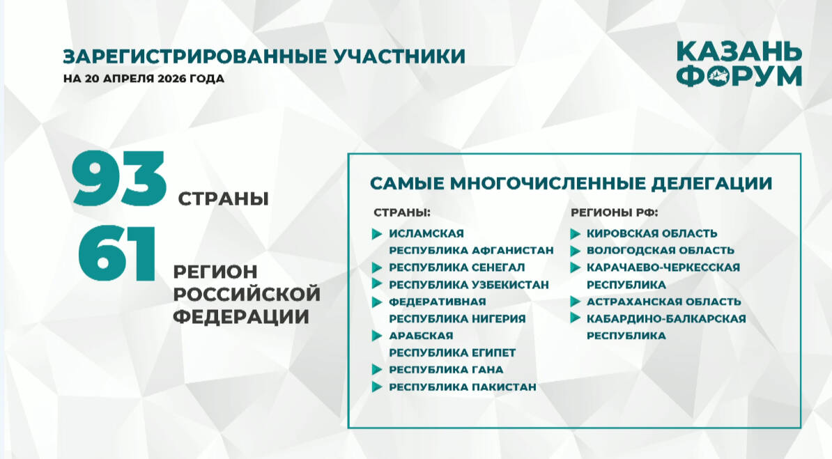 На «КазаньФорум» в этом году зарегистрировались участники из 93 стран и 61 региона РФ.