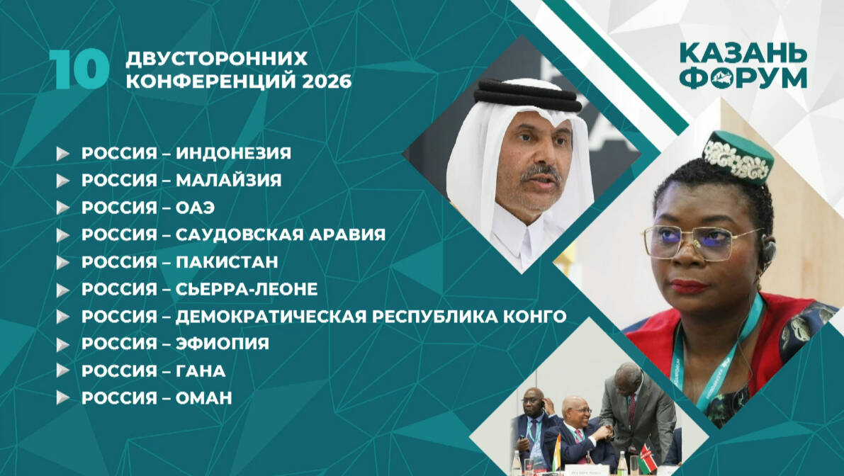 На полях форума организуют 10 двусторонних конференций между РФ и Индонезией, Малайзией, ОАЭ, Саудовской Аравией, Пакистаном, Оманом, Сьерра-Леоне, Эфиопией, Ганой и Демократической Республикой Конго.