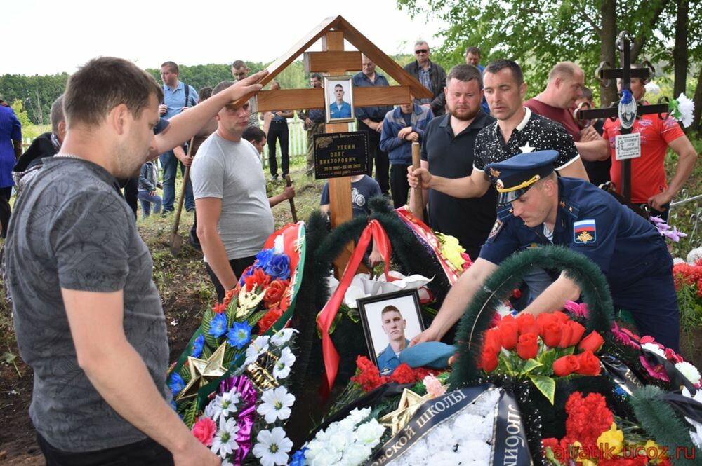 23 июня кайбичане простились с Олегом Уткиным. Его похоронили на кладбище в родном селе. Провожали бойца в последний путь глава района Альберт Рахматуллин, представитель Президента РТ — министр земельных и имущественных отношений РТ Фаниль Аглиуллин, военком Апастовского и Кайбицкого районов Наиль Зантемиров, курсанты Казанского высшего танкового командного училища, главы сельских поселений, коллектив школы, юнармейцы, родственники и односельчане.