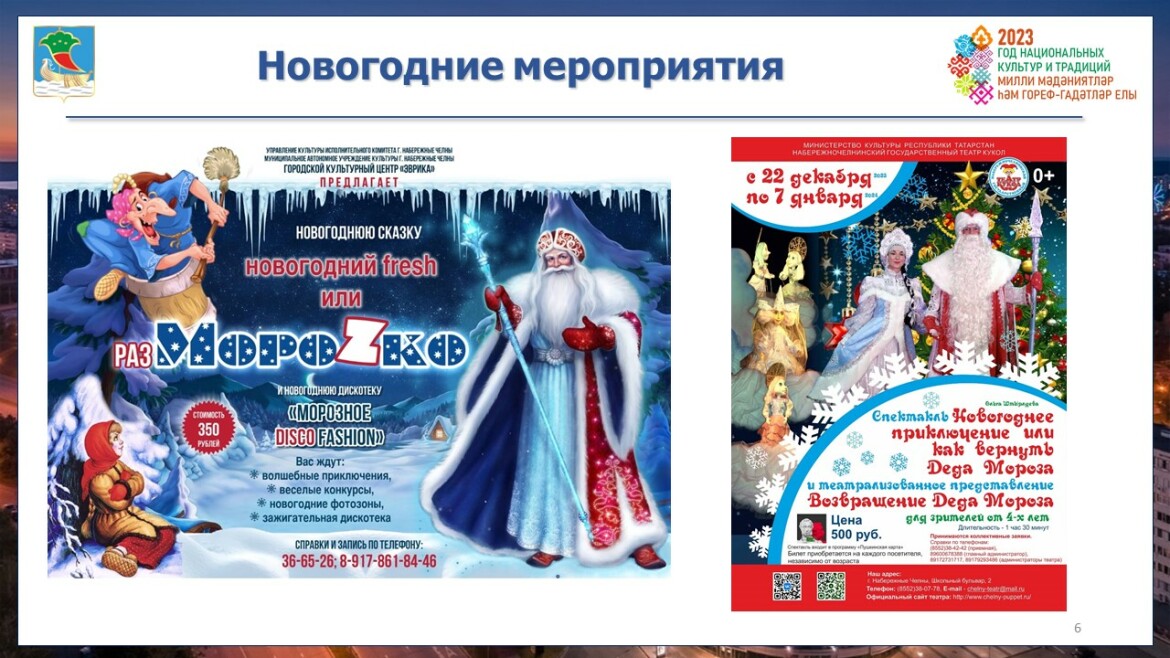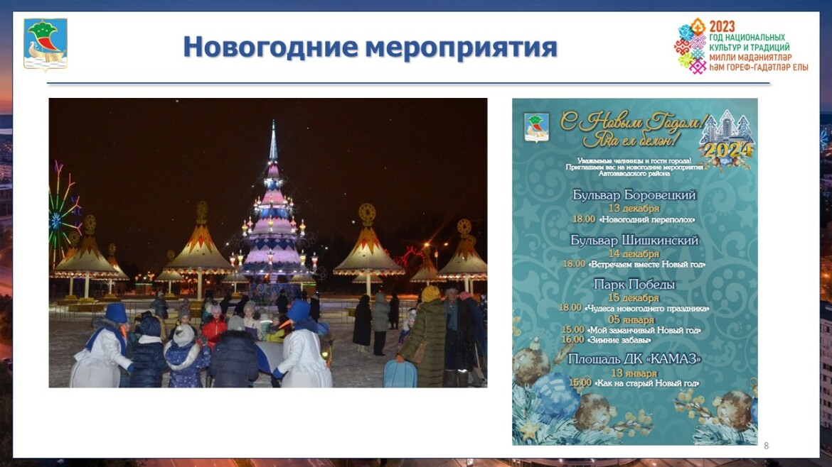 В течение всего периода новогодних праздников учреждения культуры, образования, молодежи, физической культуры и спорта запланировали спортивно-массовые, развлекательные и игровые программы. Мероприятия на общественных пространствах подготовила и команда «Парков Челнов».