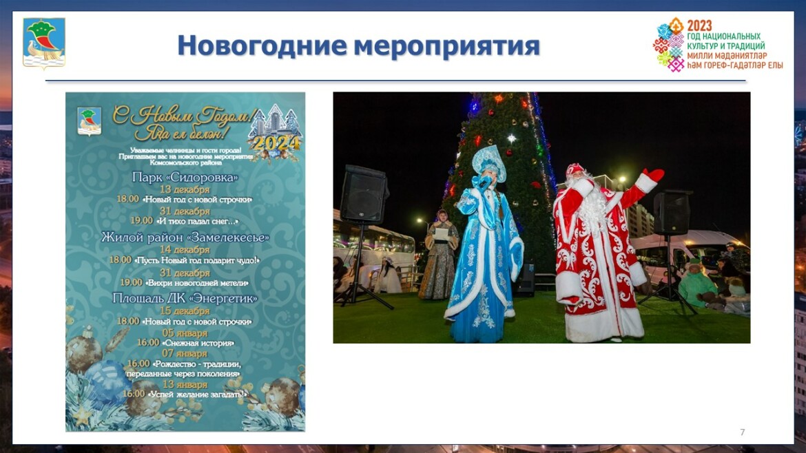 «Традиционно всех жителей и гостей города приглашаем 31 декабря на главную елку на площади перед мэрией. Лучшие артисты и творческие коллективы города подарят праздничную новогоднюю программу „Ночь счастливых надежд“», — рассказал докладчик.