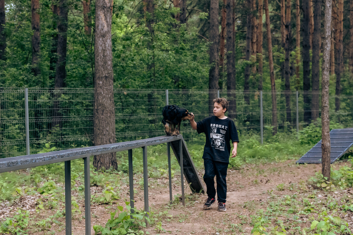 Площадка делится на две части: зону свободного выгула и тренировочную зону, а рядом работает павильон для кинолога — Татьяна Адутова курирует площадку и проводит соревнования и активности для собаководов города. Площадка дает возможность не только тренировать питомца, но и качественно проводить с ним время на выделенной безопасной территории леса.