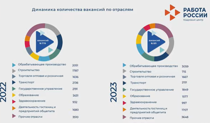 «При этом отрицательная динамика по вакансиям в сфере строительства сохраняется с 2022 года, а в сфере образования и культуры носит сезонный характер», — пояснил спикер.