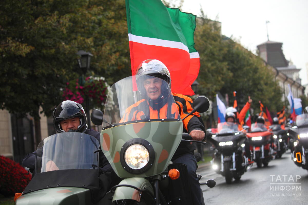 Рустам Минниханов с флагом Татарстана проехал во главе колонны из 1500 байкеров