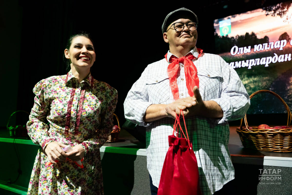 Мероприятие, которое прошло в детском центре «Экият», началось еще на улице — здесь гостям показали театрализованное представление с элементами народных игр, песен и танцев, собранных в ходе фольклорных экспедиций по селам района. Здесь же расположилась экспозиция «Актаныш капкалары» — инсталяции с названиями сельских поселений района.