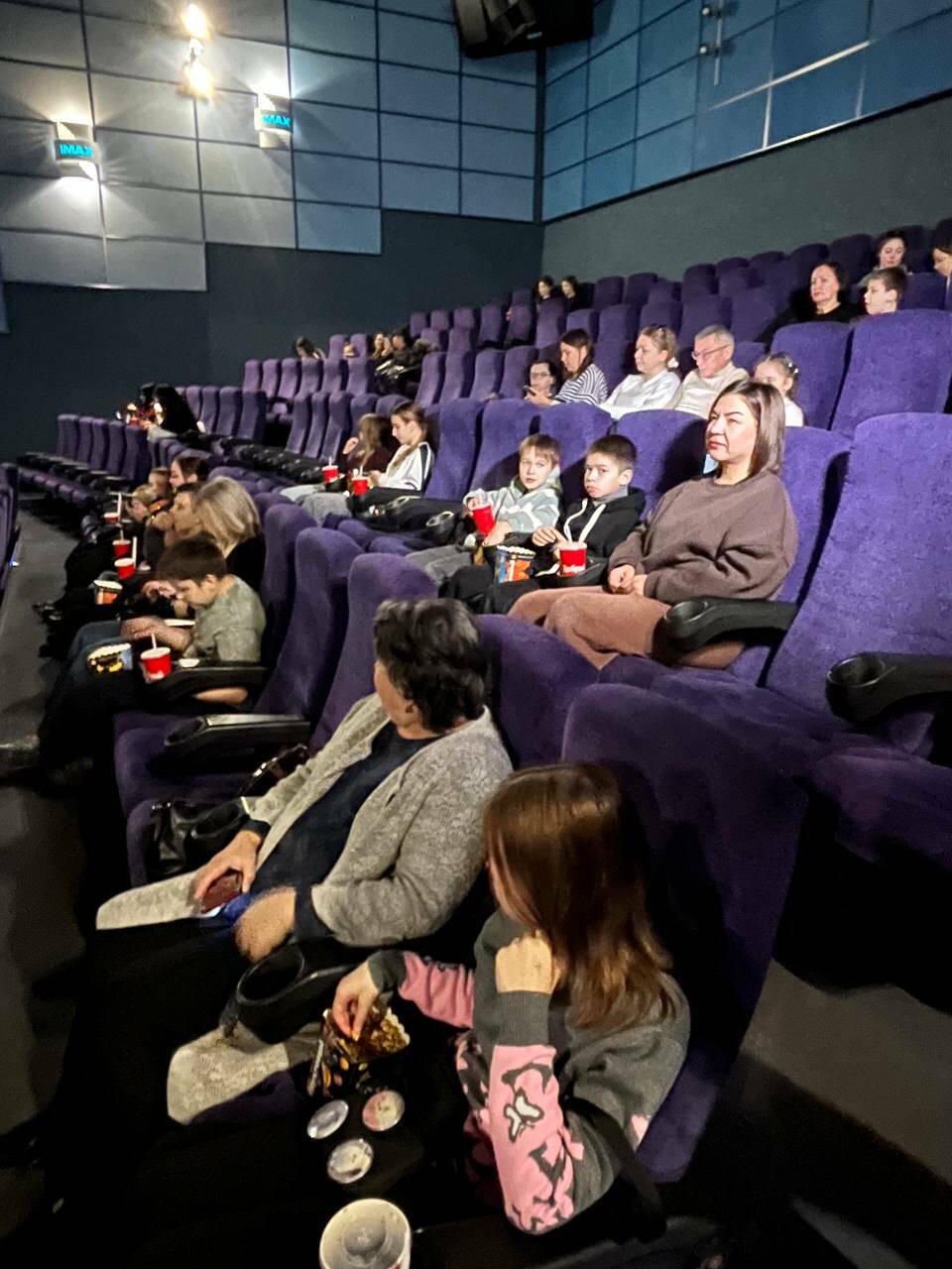 «Я рад, что пришел, потому что тут попкорн и колу дают бесплатно», – отметил сын Бахтияр. «Обрадовался, конечно. Мне это давно сказали. Я рад, что в кино наконец-то», – добавил сын Данияр.