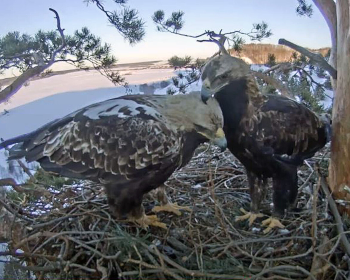 «Ранее считалось, что орлы прилетают в Татарстан только в начале апреля, но за последние годы я понял, что они прилетают гораздо раньше. Три года назад орлы прилетели 18 марта, потому что весна была ранняя. В прошлом году Алтын прилетел 23 марта, а Алтынай – 24-го. Нынче Алтынай появились лишь 25 марта, а Алтын – 26-го. Хотя наблюдатели слышали крики орлов на день раньше, птицы в поле зрения камеры не попадали. Эта задержка связана с тем, что нынче весна холодная», – пояснил Ринур Бекмансуров.