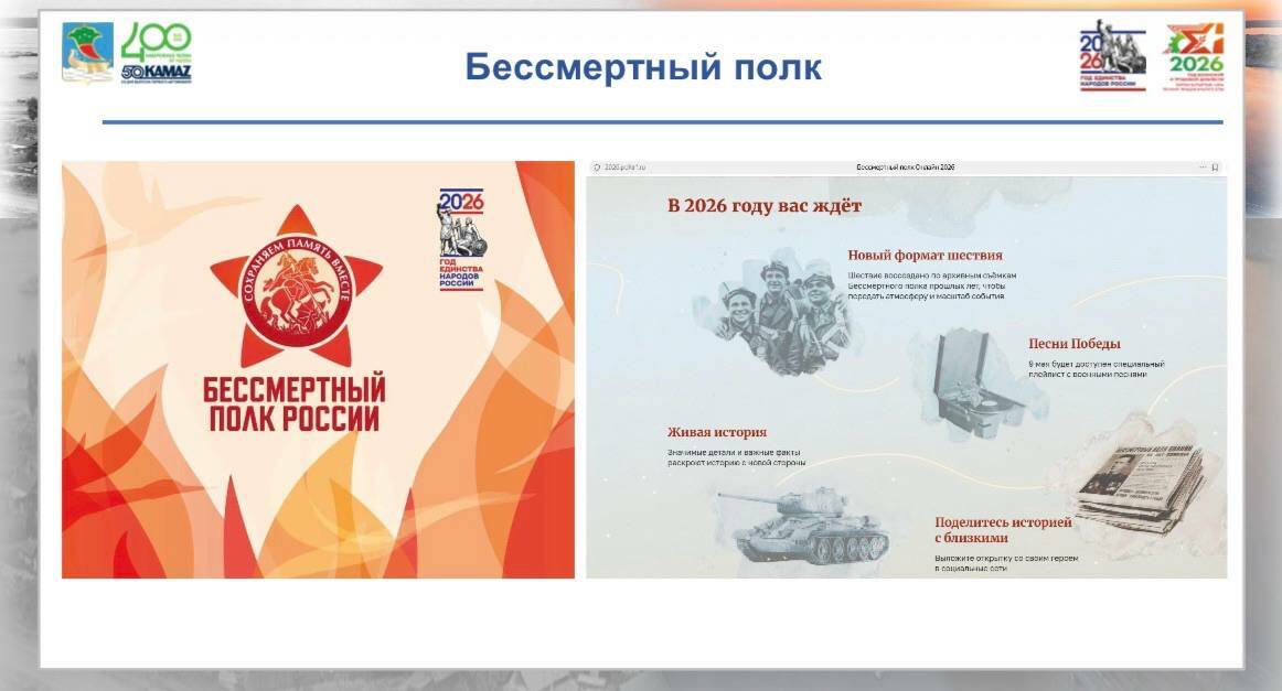 По его словам, в этом году мероприятия объединят три ключевых смысловых направления: подвиг народа в годы Великой Отечественной войны, наследие Героя Советского Союза Мусы Джалиля в год 120-летия со дня его рождения, а также преемственность поколений в рамках Года воинской и трудовой доблести.