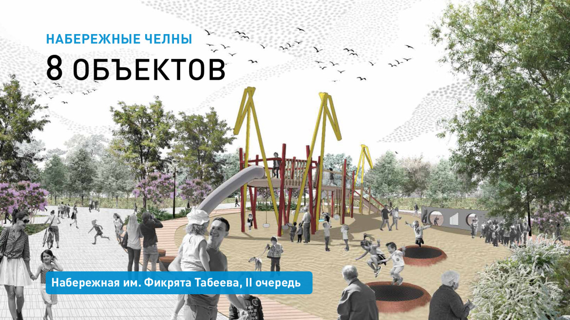 Следующим этапом будет создание единого пространства набережной с парком «Прибрежный». Всего же в этом году жители Челнов могут отдать свои голоса за восемь объектов, в том числе за 3-ю очередь парка «Прибрежный».