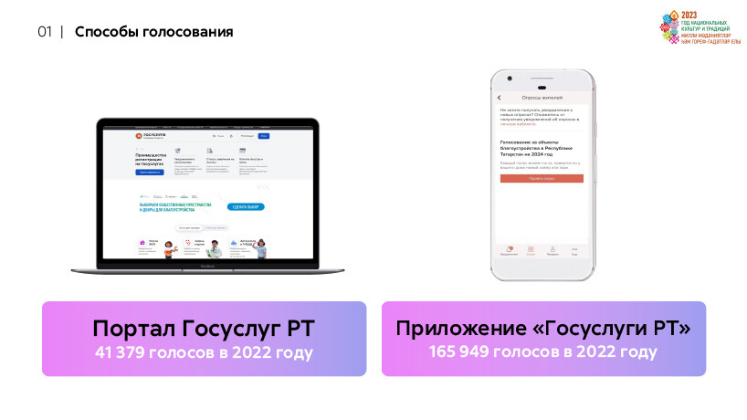 Первый замминистра цифрового развития Татарстана Илья Начвин рассказал, что жители республики предпочитают использовать мобильное приложение «Госуслуги РТ» для голосования по выбору благоустройства общественных территорий. Наиболее активным пользователям приложения уже разослали 630 тыс. уведомлений о старте онлайн-голосования по обновлению пространств на 2024 год.