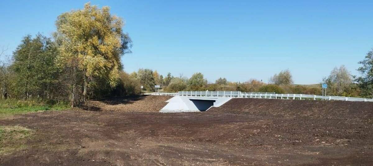 Работы включали демонтаж старого моста, укладку нового полотна, установку опор, систем водоотвода, дорожных знаков и ограждений.