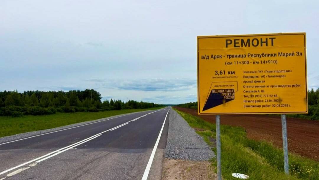 Также завершены работы на участках Арск – Б. Атня – Ср. Верези, Арск – Сиза, Н. Кинер – Н. Ура и Арск – гр. Марий Эл – Учили – Иске Юрт. Следующий этап запланирован на следующий год.