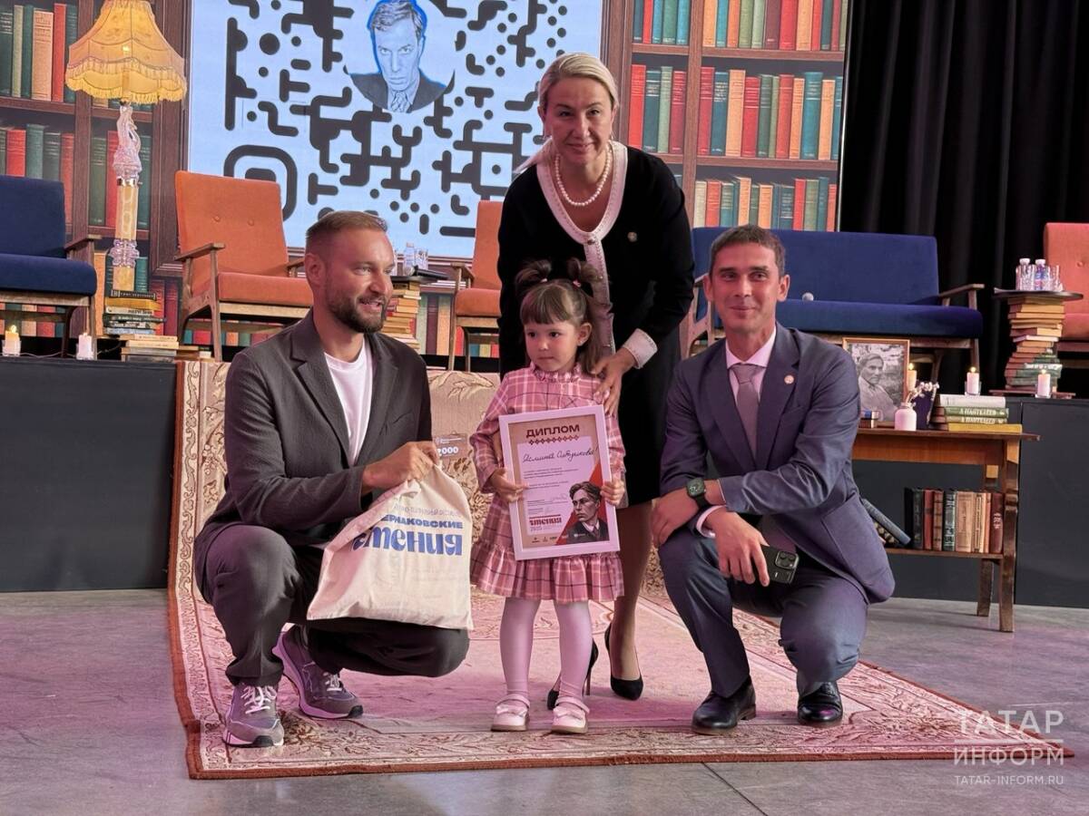 Слева направо: Юрий Разбежкин; обладательница спецприза конкурса чтецов стихотворений Ясмина Ситдикова; Ирада Аюпова; Роберт Искандаров