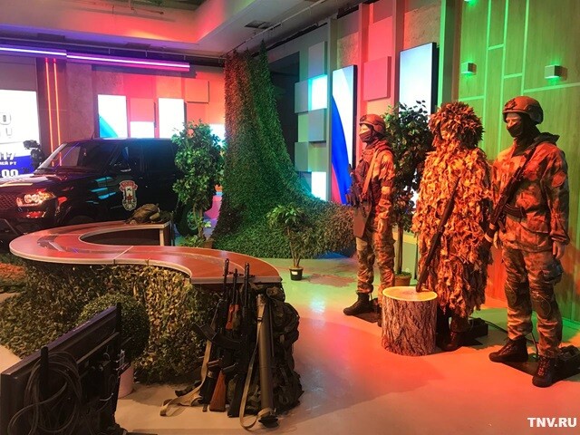 Судя по опубликованным кадрам, студию оформляют в патриотической стилистике.